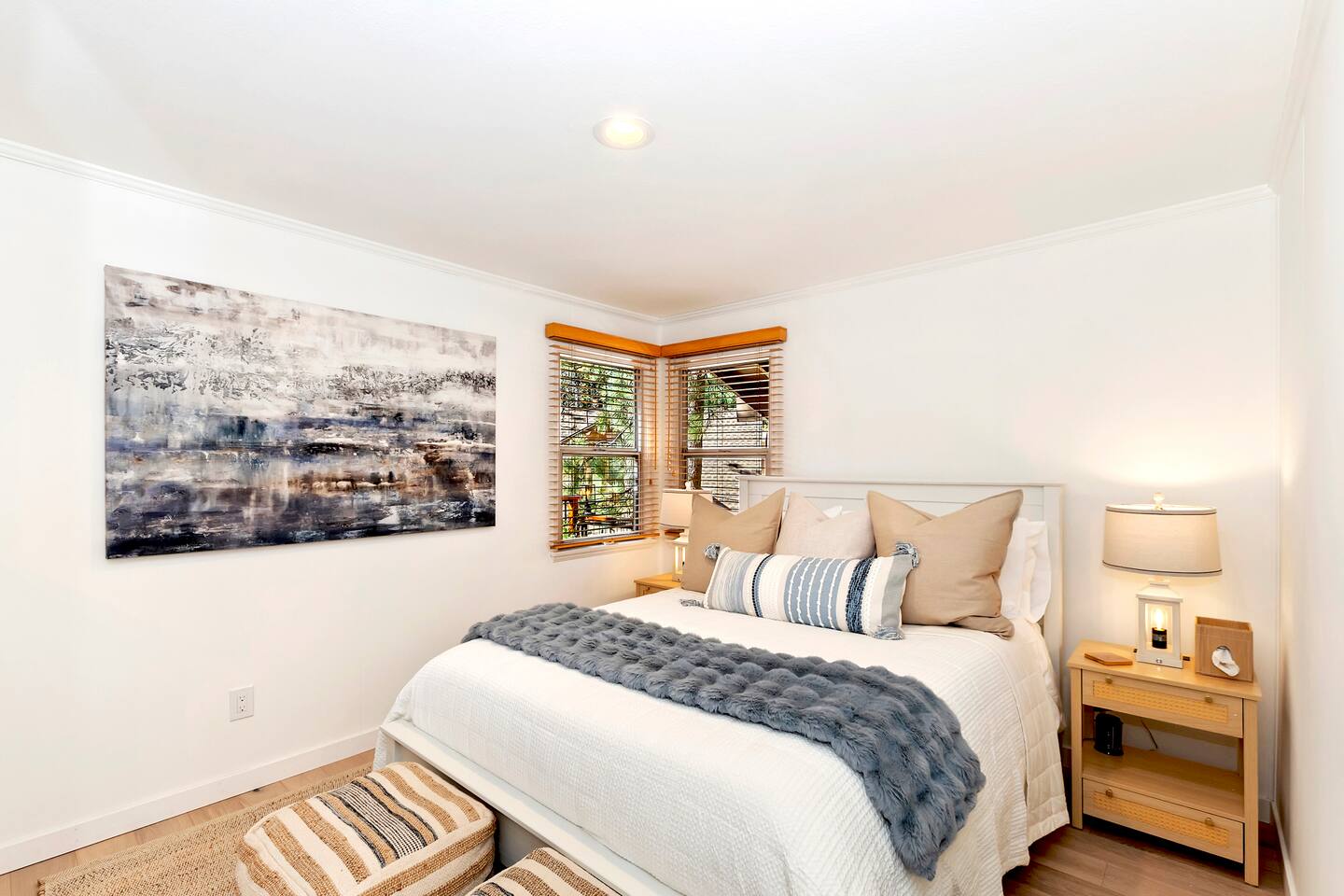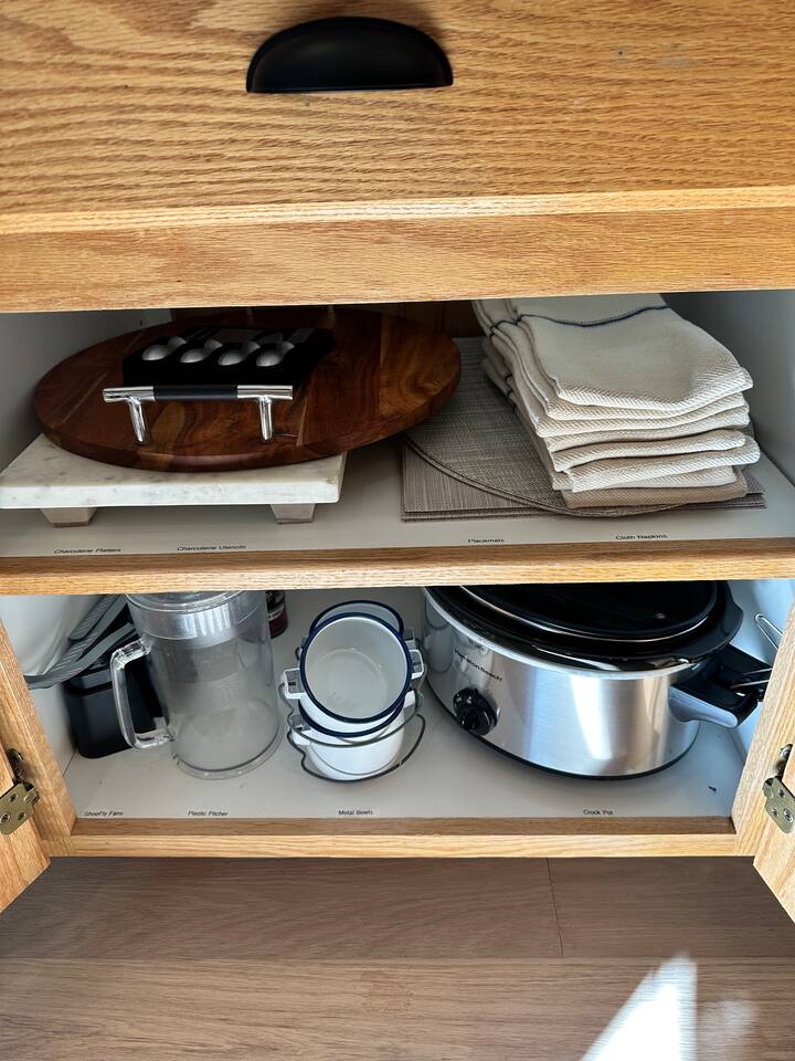 MAIN HOUSE Living room, Roku TV with soundbar, dining table for 6, bar seating for 4, a beautiful remote operated gas burning fireplace, and plenty of comfortable living room seating. ROOMS & BEDS - 4 bedrooms, 4 baths total BED #1 Primary Suite: 1 King bed and Ensuite Bath with dual head shower and double sink vanity. Side tables with charging ports in lamps. Alexa smart clock for alarm, music, sleep sounds, etc. BED #2 Hall Bed: 2 Twin beds (can be combined using the provided bed bridge for 1 King bed), Access to hall bath with single vanity and step in shower. Side tables with charging ports in lamps. Alexa smart clock for alarm, music, sleep sounds, etc. BED #3 EnSuite: 1 Queen bed with Ensuite Bath with single sink vanity, bathtub with shower enclosure. Side tables with charging ports in lamps. Alexa smart clock for alarm, music, sleep sounds, etc. BED #4 Detached Guest House: 1 Queen bed, 1 Queen sofa bed, 1 Twin futon bed, Roku TV in Living Area, wet bar kitchenette equipped with microwave, keurig coffee maker, AirFryer, crock pot, hot water kettle. Side tables by the Queen Bed with charging ports in the side tables. Alexa smart clock for alarm, music, sleep sounds, etc. Electric fireplace for light and heat, remote control operated. GARAGE (directly below the Guest House) is the Game Room and Laundry area (no garage parking): Roku TV, Two leather recliner chairs, Table with 6 chairs, 4 swivel bistro chairs, 7.5’ pool table, dart board. Side by side laundry may be used by guests. Electric fireplace for light and heat, remote control operated. KITCHEN - Full kitchen with stove/oven, refrigerator, dishwasher, microwave, blender, toaster, Keurig, rice cooker, dishes, pots/pans, spices, and more. BBQ tools are in the cabinet to the right side of the microwave. There is also a set of Smore’s sticks and two silver buckets, one for the clean, one for the dirty sticks. Please bring them back indoors when finished and clean off the used sticks and return. OTHER AMENITIES - Board games, puzzles and card games. 3 Roku TVs and WiFi provided. Laundry with side-by-side washer/dryer may be used in garage. OUTDOORS - Outdoor patio furniture, and propane barbecue. Enjoy the gorgeous view of Big Bear surroundings from the spacious decks and a fenced yard! FIREPIT - may not be used 10pm-7am per City guidelines. The Firepit needs to be manually lit with the key (in main house on wall shelf beside back door). Please TURN OFF Firepit after use. If left on for extended periods or over night, additional charges may apply for excessive gas use. PARKING - 4 car driveway SNOW PLAY - Two plastic sleds you may use will be on the property. OTHER Maximum occupancy to 8 adults plus 2 children max. Big Bear Lake local ordinance 99.300 limits Children, toddlers, and infants count as a person. Occupancy is permitted per City Ordinance - over occupancy could result in a fine or non-refundable eviction. Check in: 3 pm Check out: 11 am Hiking Trails - Several in the area. Lake Access - 5 minute walk to shoreline from path across the street Boulder Bay Park - 0.5 miles 10-15 minute walk from 507 Blue Jay Boulder Bay Liquor - 0.6 miles 10-15 minute walk from 507 Blue Jay Alpine Slide - 2.0 miles from 507 Blue Jay Snow Summit Ski - 4.7 miles from 507 Blue Jay Bear Mountain Ski - 6.4 miles from 507 Blue Jay Mountain Transit is currently a Free shuttle - Pick up spot is on Willow Landing Road and the Shuttle headed Eastbound leaves approximately 10 min after the hour. Times vary, so check with Mountain Transit for routes and times.