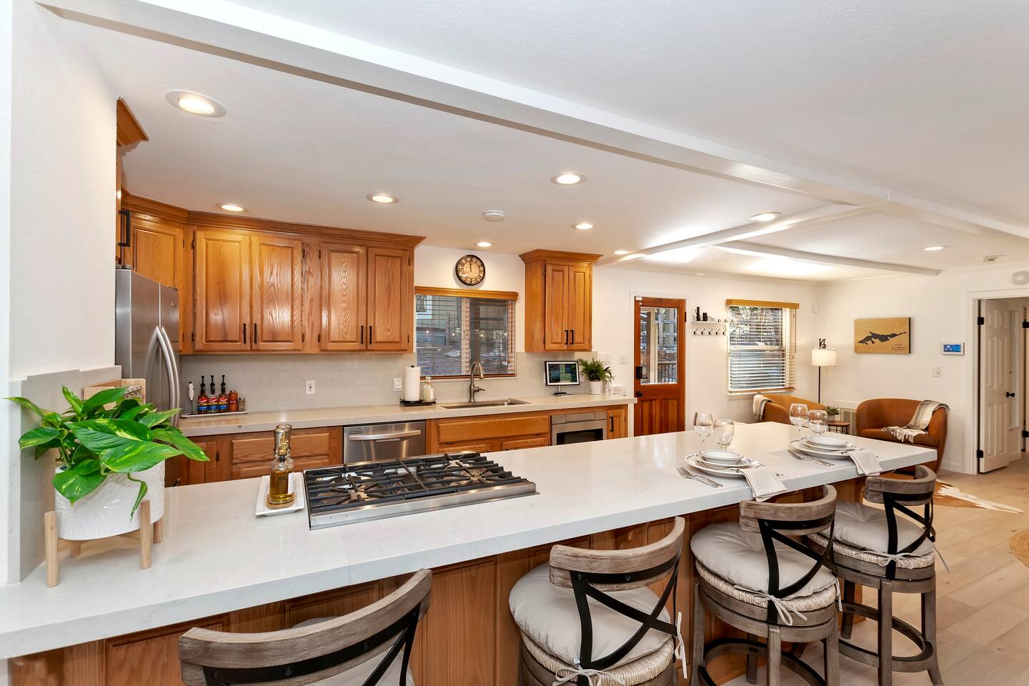 Why Choose This Home? This is not just a place to stay; it's a setting that feels like it’s straight out of a storybook, you’ll find every reason to fall in love with this property. Don’t just book a trip—create a lasting memory. Reserve your magical Boulder Bay retreat today! Escape to Your Perfect Getaway in Magical Boulder Bay Discover the ultimate retreat in Boulder Bay with two stunning homes—a main house and guest house—offering 4 spacious bedrooms, 4 bathrooms, and luxurious amenities. Nestled on a serene, expansive lot that feels like your own private parklike setting, the property features a firepit for starlit s’mores, an après-ski lounge with a pool table & dart board. Just a few short steps to a lake access pathway. Enjoy the large front yard for sunny picnics, lively games of cornhole, or building a snowman during magical white winters. Minutes from Pleasure Point Marina, Boulder Bay Park, hiking trails, The Village, ski resorts, and more. This haven combines privacy, comfort, and convenience for unforgettable memories. Book your dream escape today! Exterior Security Cameras are present. We receive notifications from exterior cameras 24/7 & have access to replay. We have a zero tolerance policy regarding unauthorized parties, illegal behavior and allowing unregistered guests onto our property. Exterior cameras are present at all doorbells, front, rear, & side decks and firepit area. Please note: this is a strictly No smoking property anywhere on the premises including outside on our decks and around the firepit.